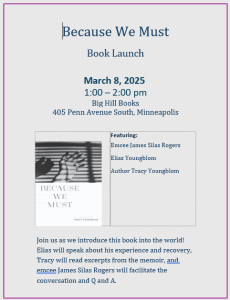 You are invited to attend Prof. Tracy Youngblom’s book launch for her moving memoir Because We Must on Saturday, March 8 at 1 p.m. Youngblom’s memoir recounts the traumatic experience of her son being hit in a head-on collision with a drunk driver. “In this riveting memoir, Youngblom traverses her family’s lives before and after the accident, capturing the complications of grief, recovery, and the strength it takes to move forward—because we must.” Read more here: https://www.umasspress.com/9781625348524/because-we-must/