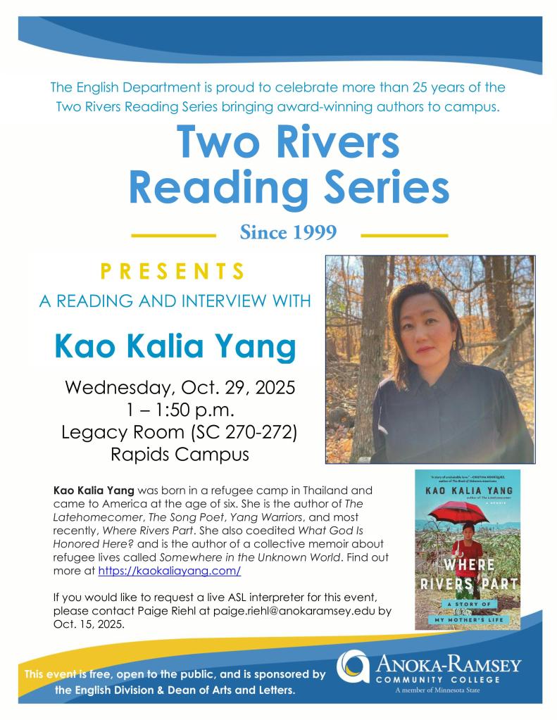 Attend our Fall Two Rivers Reading Event featuring Kao Kalia Yang Wednesday, Oct. 29, 2025: